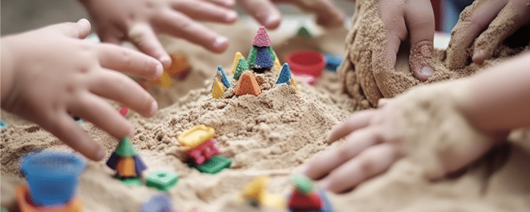 - Let children dig holes and build sandcastles and knock them over. Provide buckets and spades and let children use their imaginations to create small worlds with pebbles or driftwood found on the beach.