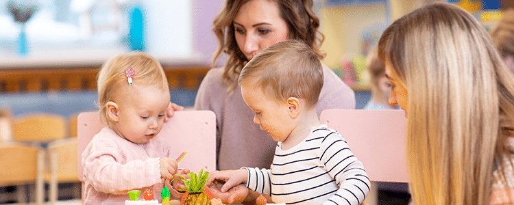 • Babies will enjoy playing with treasure baskets that are filled with interesting objects and containers that they can drop items into.